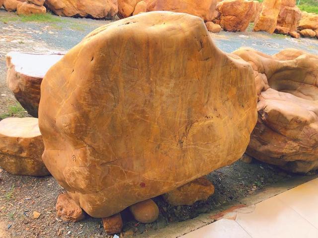 二、石表特质:晚霞红景观石以“透、瘦、漏、皱“著称,表面纹理丰富,细腻有光泽,而黄蜡石石表滋润细腻,湿润如玉,触感柔和,两种石材稍有不同,但形态生动,多样,具有任人想象的空间而受人钟爱。