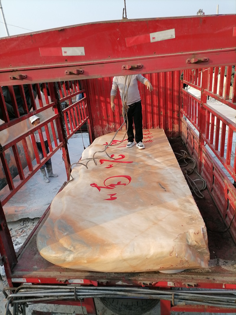 长6.5米晚霞红刻字石已加工完毕,顺利发车信阳市,感谢客户支持!