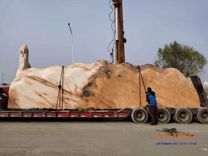 热烈祝贺!祖国你好 晚霞红景观石长11米 高3米 厚0.6米大型景观石,顺利发车!